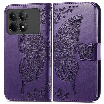 Θήκη τηλεφώνου δερμάτινη ανάγλυφη με λουλούδια και σχέδιο πεταλούδας για Xiaomi Redmi K70E (Χρυσό Ροζ)
