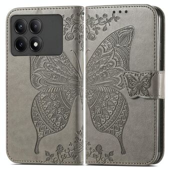 Θήκη τηλεφώνου δερμάτινη με ανάγλυφο σχέδιο πεταλούδας και λουλουδιών για Xiaomi Redmi K70E (Γκρι)