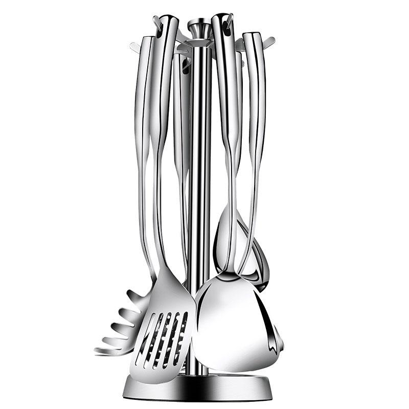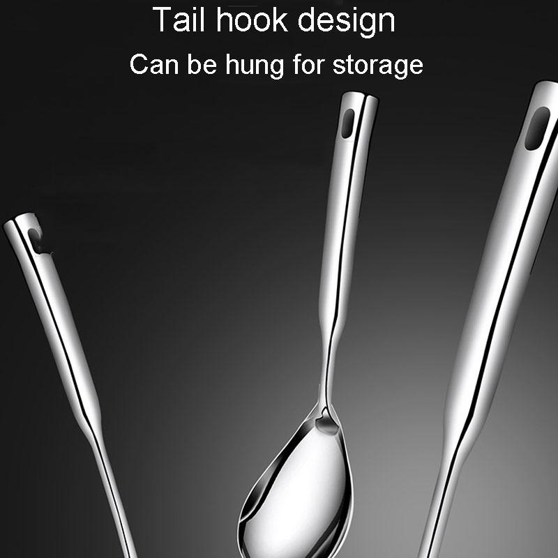 1. Υλικό: ανοξείδωτος χάλυβας 2. Εφαρμογή: σπίτι, εστιατόριο, ξενοδοχείο, δώρα 3. Γυαλιστερή επιφάνεια, εύκολο στον καθαρισμό 4. Κούφια αντιθερμική λαβή, άνετη στην κράτηση 5. Σχέδιο γάντζου στο άκρο, για εύκολη αποθήκευση με κρέμασμα 6. Χειροποίητα γυαλισμένες άκρες, στρογγυλεμένες και χωρίς γρέζια 7. Υλικό από ανοξείδωτο χάλυβα, ανθεκτικό και δεν παραμορφώνεται εύκολα 8. Μέγεθος: - Σπάτουλα: 38,5 x 9,5cm - Κουτάλα σούπας: 36,5 x 9cm - Τρυπητή κουτάλα: 38,5 x 11,5cm - Σπάτουλα τηγανίσματος: 40 x 7,8cm - Κουτάλα για noodles: 37 x 7,8cm - Κουτάλα ρυζιού: 30 x 7,5cm - Βάση αποθήκευσης: 43 x 15,8cm 9. Βάρος: - Σπάτουλα: περίπου 195g - Κουτάλα σούπας: περίπου 214g - Τρυπητή κουτάλα: περίπου 217g - Σπάτουλα τηγανίσματος: περίπου 169g - Κουτάλα για noodles: περίπου 186g - Κουτάλα ρυζιού: περίπου 163g - Βάση αποθήκευσης: περίπου 1131g