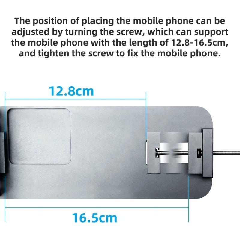 9. Η θέση τοποθέτησης του κινητού τηλεφώνου μπορεί να ρυθμιστεί περιστρέφοντας τη βίδα, η οποία μπορεί να υποστηρίξει κινητά τηλέφωνα μήκους 12,8-16,5cm και σφίγγοντας τη βίδα για να στερεωθεί το κινητό τηλέφωνο.