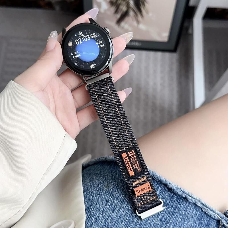 Kalebol 18mm Universal Nylon Loop Fastener Denim Watch Band(Black) (Kalebol)