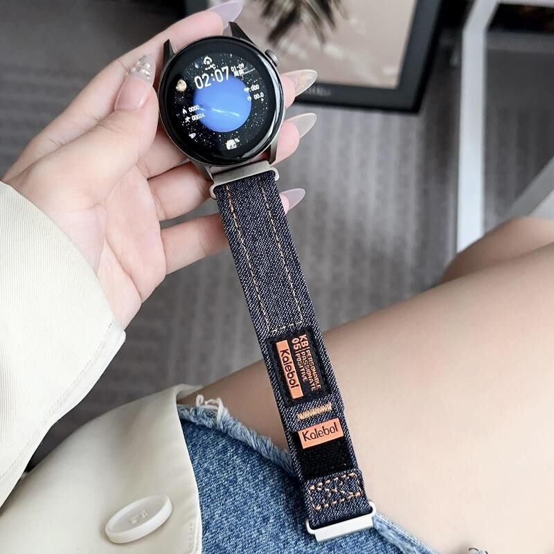 Kalebol 22mm Universal Nylon Loop Fastener Denim Watch Band(Dark Grey) (Kalebol)