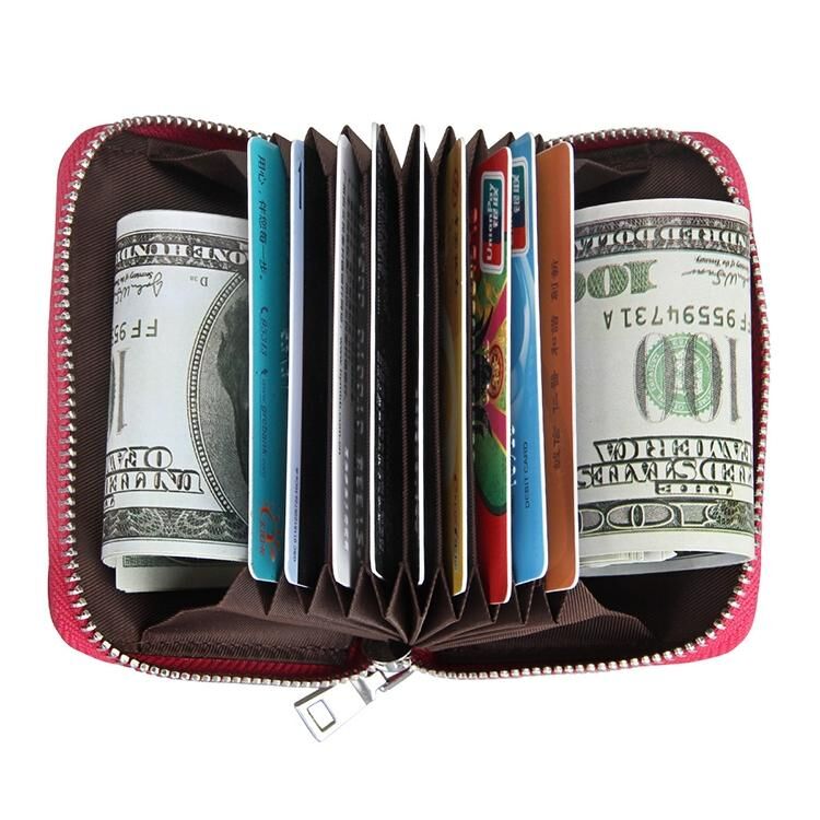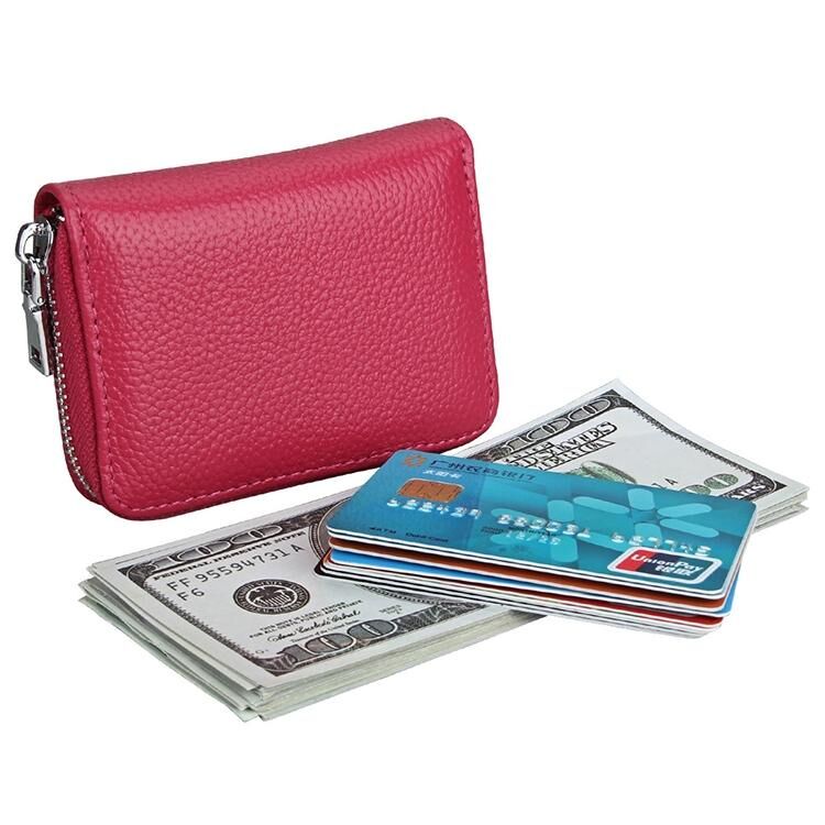 KB205 Αντιμαγνητική RFID Litchi Υφή δέρμα φερμουάρ μεγάλης χωρητικότητας κάρτα κάτοχος πορτοφόλι (Rose Red)