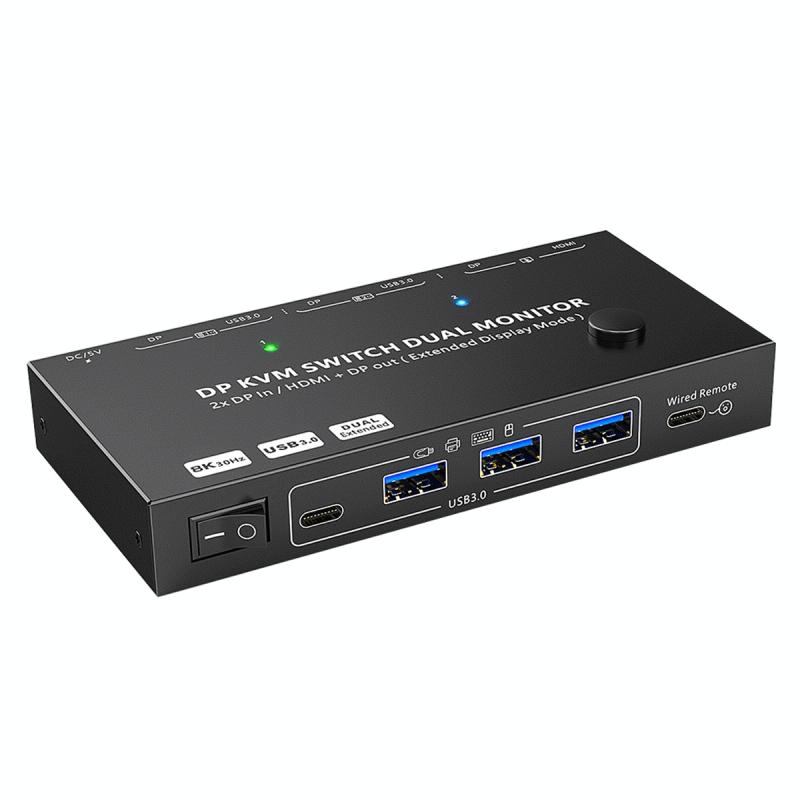 Αυτό το KVM switch διπλής οθόνης USB και DisplayPort μπορεί να ελέγξει 2 επιτραπέζιους ή φορητούς υπολογιστές με ένα σετ ενσύρμενων ή ασύρματων πληκτρολογίων, ποντικιών και 2 οθονών. Υποστηρίζει λειτουργία επέκτασης οθόνης ή λειτουργία διπλής οθόνης. Αυτό το προϊόν είναι το καλύτερο KVM switch για να βελτιώσετε την αποδοτικότητά σας και να κάνετε τον χώρο εργασίας σας πιο τακτοποιημένο. Είναι επίσης μια επιλογή υψηλής ποιότητας για εργασία και σπίτι.
