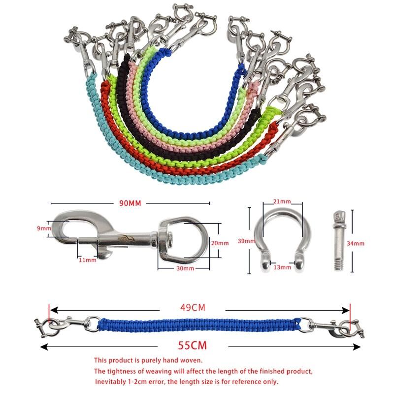 6. Material: seven-core nylon rope + 316 stainless steel (bolt hook) + 304 stainless steel (bow lock)