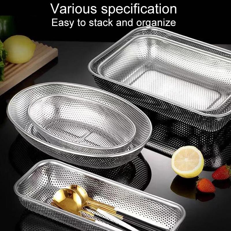 Οργανωτής οικιακών μαχαιροπήρουνων γραφείου αποστείρωσης κουζίνας από ανοξείδωτο χάλυβα δίσκος αποστράγγισης, μοντέλο: Γραμμή ορθογώνιο καλάθι εξαιρετικά μεγάλο