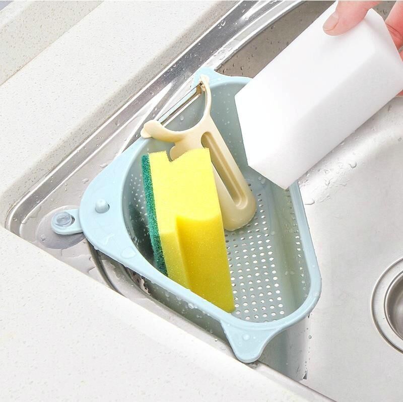 Ράφι κουζίνας για λαχανικά, στήριγμα αποστράγγισης νεροχύτη, κρεμάστρα αποθήκευσης τριγωνικού σχήματος, δίσκος χωρίς τρύπημα, κρεμαστή καλαθωτή (Μπλε)