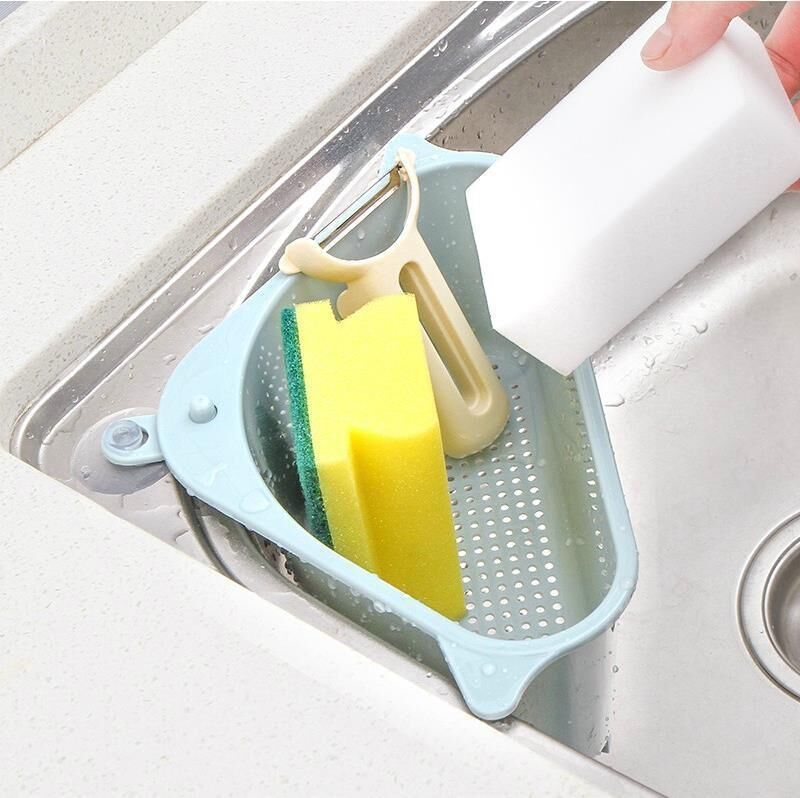 Ράφι Λαχανικών Κουζίνας, Στήριγμα Στραγγιστήρα Νεροχύτη, Κρεμάστρα Αποθήκευσης Τριγωνικού Σχήματος, Δίσκος Χωρίς Τρύπημα, Κρεμαστή Καλάθι (Γκρι)
