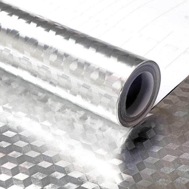 Kitchen Wall Stove Aluminum Foil Oil-proof Stickers Anti-fouling High-temperature Self-adhesive Croppable Wallpaper Wall Sticker, Size:60cmx5m Style: Cube