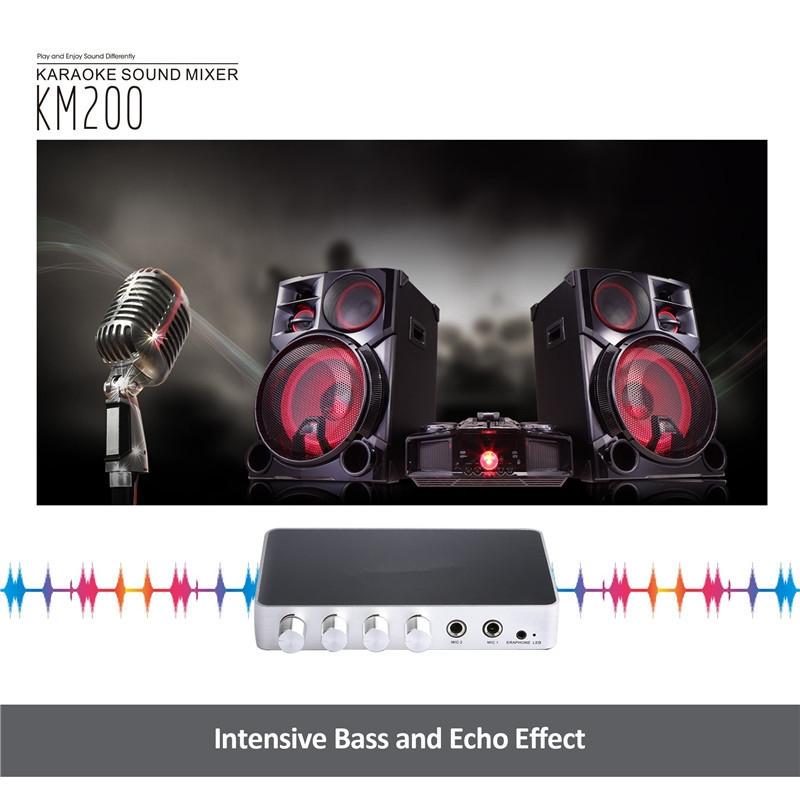 Amplify and echo the sound from external microphones to mix with original sound, then transfers the output via HDMI port both including video and sound.