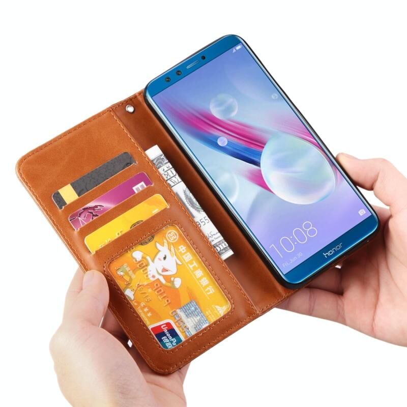 Θήκη δέρματος με ανάγλυφη υφή, οριζόντιο άνοιγμα για Huawei Honor 9 Lite / Honor 9i, με κορνίζα φωτογραφιών & βάση στήριξης & θήκες καρτών & πορτοφόλι (Καφέ)