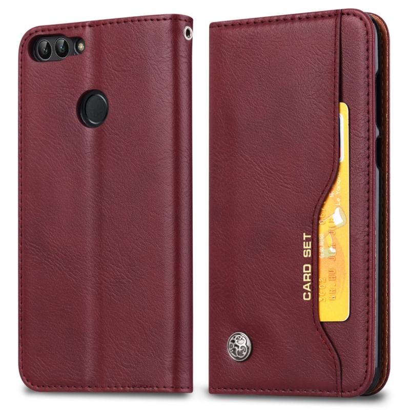 Knead Skin Texture Horizontal Flip Leather Case για Huawei P smart / Enjoy 7S, με κορνίζα & θήκη φωτογραφιών & υποδοχές καρτών & πορτοφόλι (Wine Red)