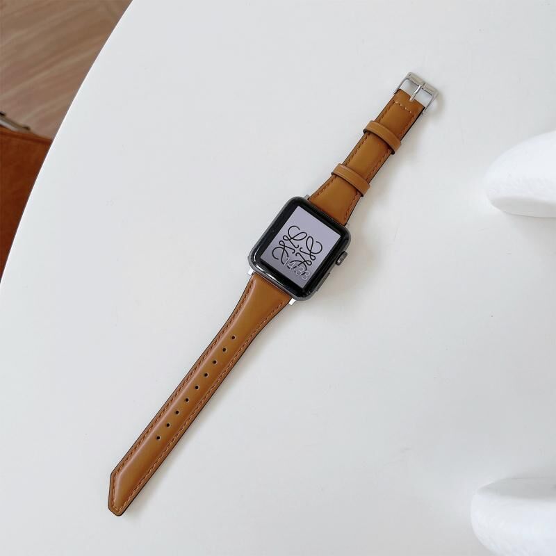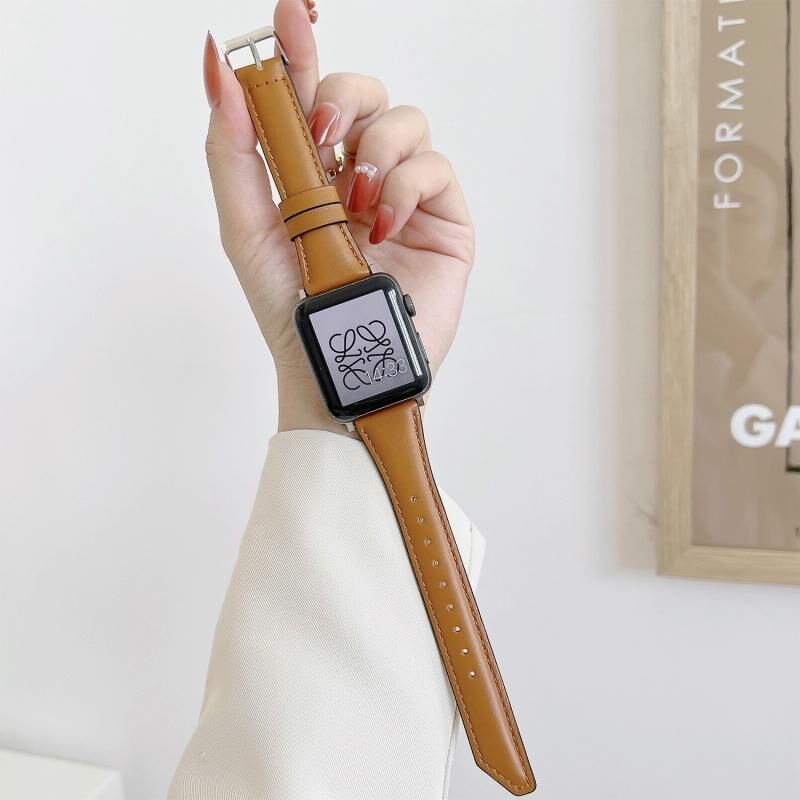 Knife Tail Shaped Cowhide Watch Band For Apple Watch Series 9&8&7 41mm / SE 3&SE 2&6&SE&5&4 40mm / 3&2&1 38mm(Brown)