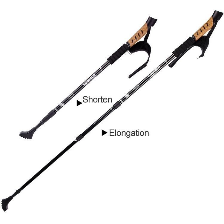 Μπατόν πεζοπορίας KODENOR για ορειβασία, φορητό, αναδιπλούμενο, από κράμα αλουμινίου με ευθεία λαβή, Alpenstocks, μήκος: 66-135CM (Μαύρο)