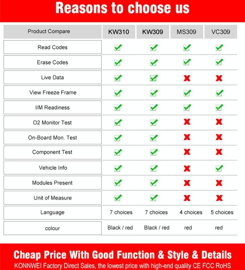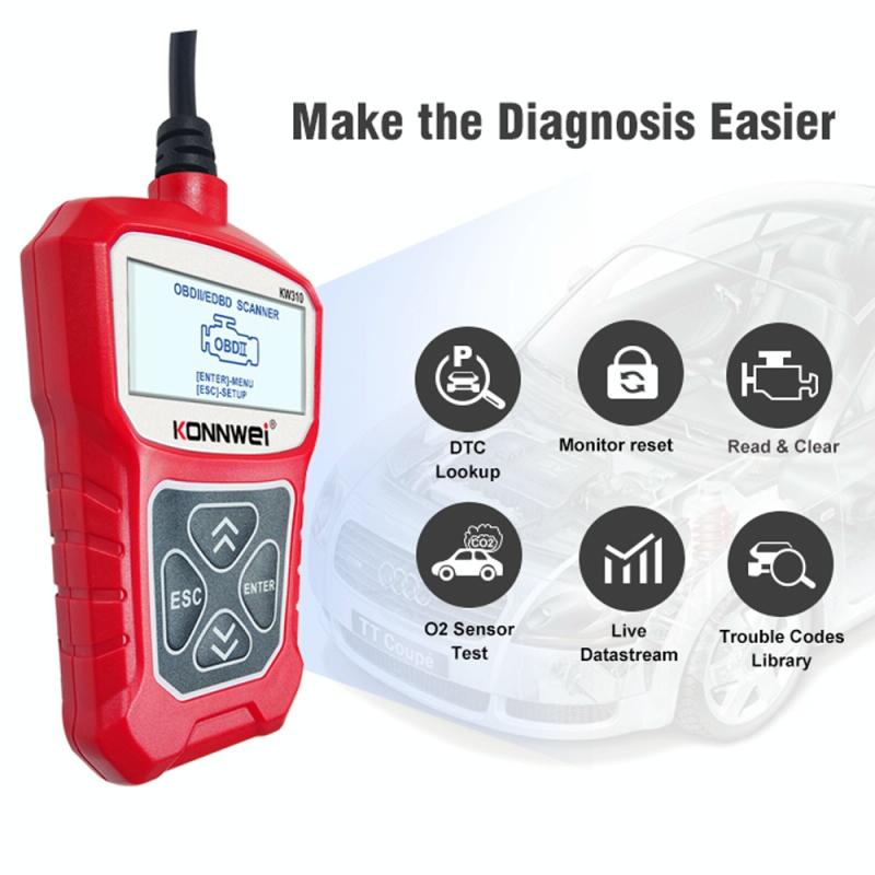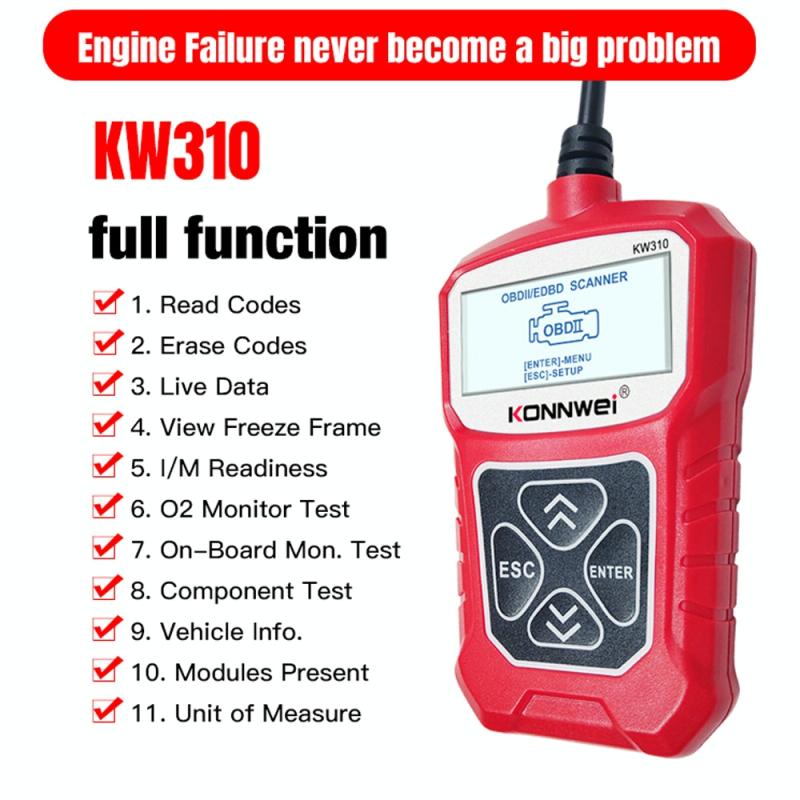 7. Views freeze frame dataThe KONNWEI KW310 OBD2 / EOBD / CAN Car Diagnostic Scanner supports all 10 OBDII test modes on all OBDII compliant vehicles for a complete diagnosis. the KONNWEI KW310 is truly the ultimate in power and affordability, allowing users to do their jobs faster.