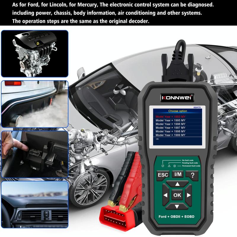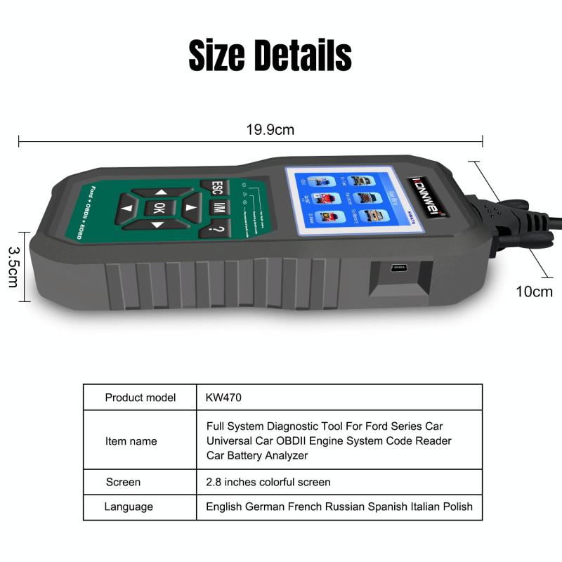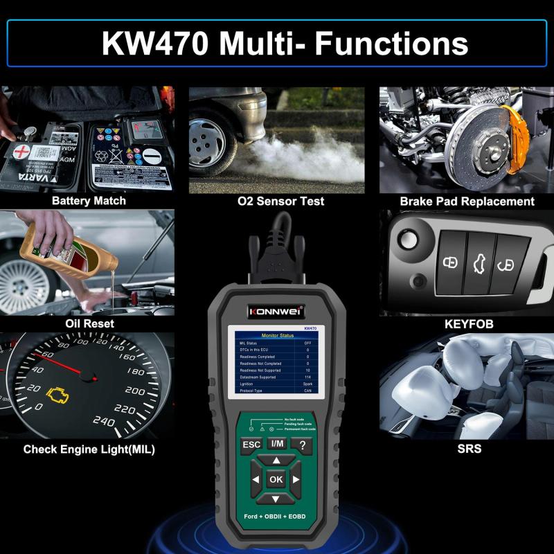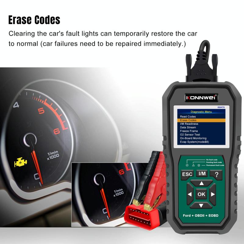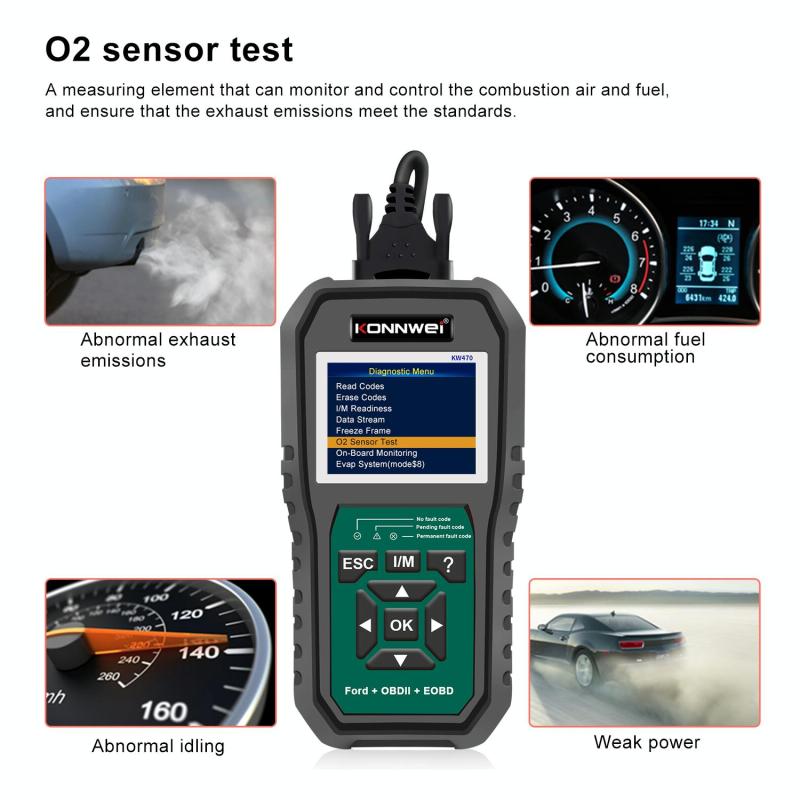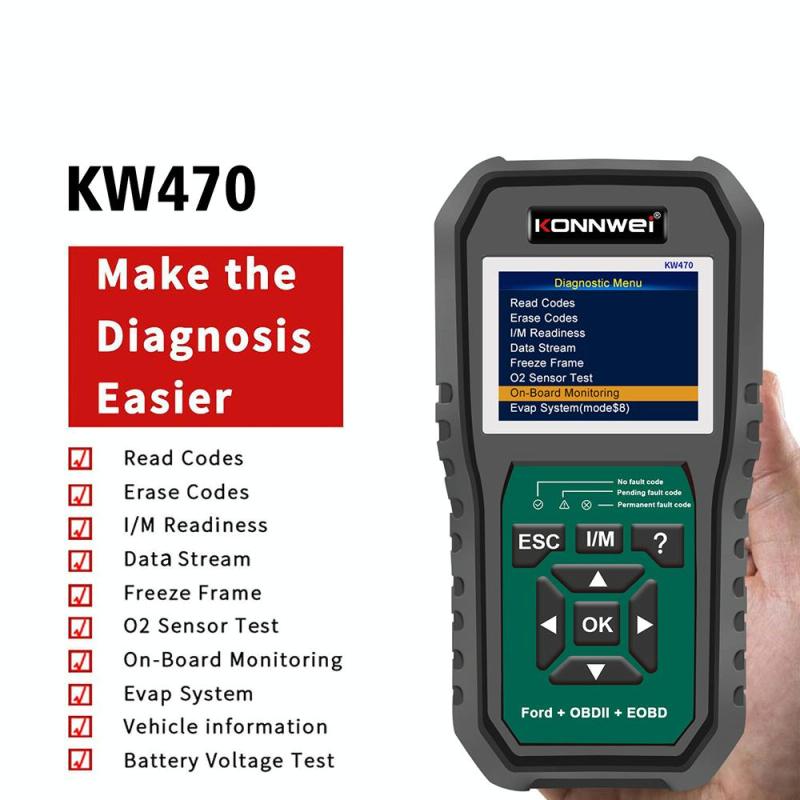 KONNWEI KW470 2.8 inch Color Screen Car OBD2 Fault Diagnostic Scan Tool for Ford(Black Green) (KONNWEI)