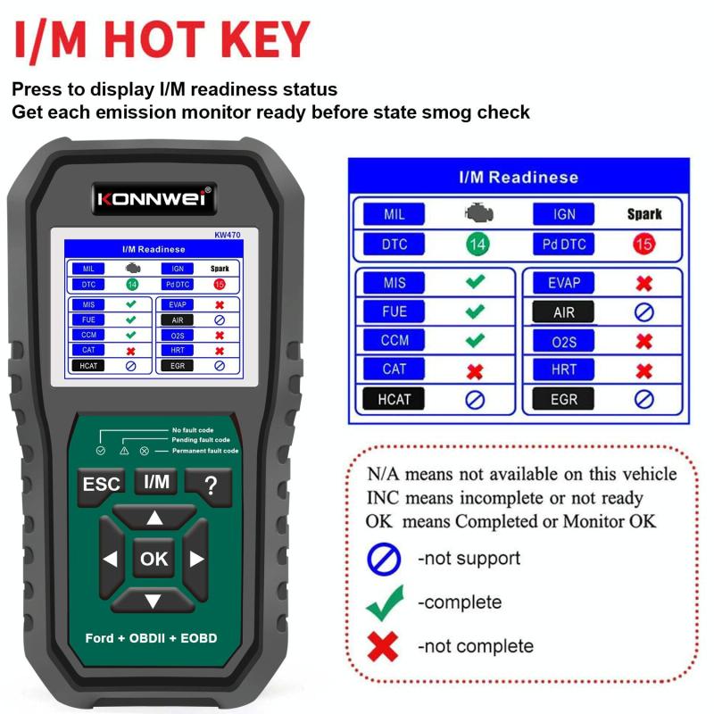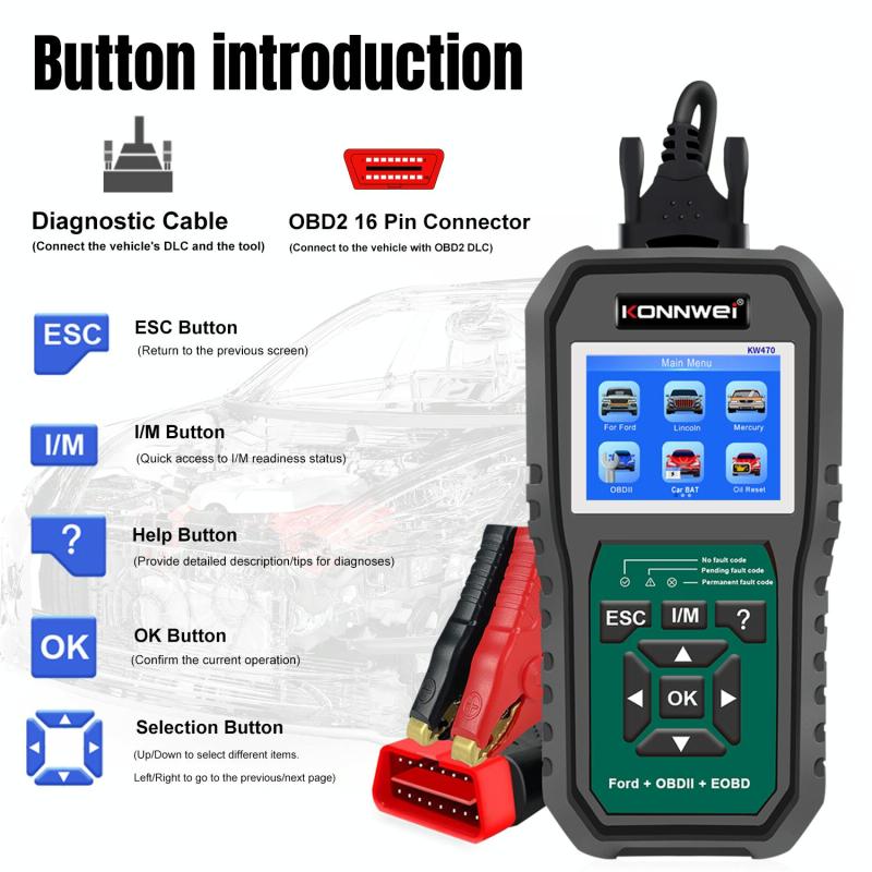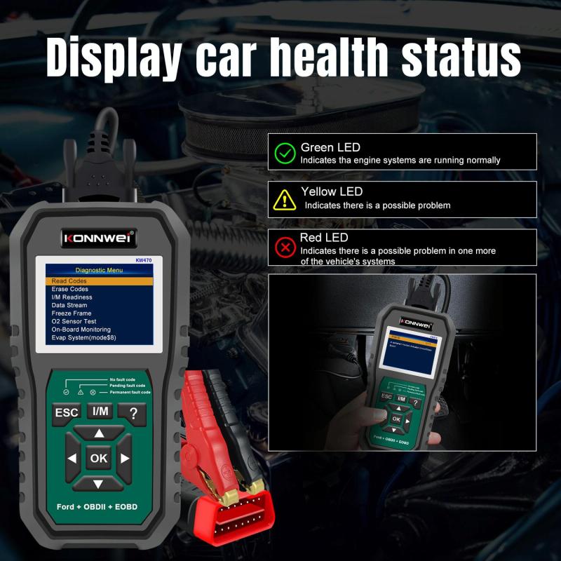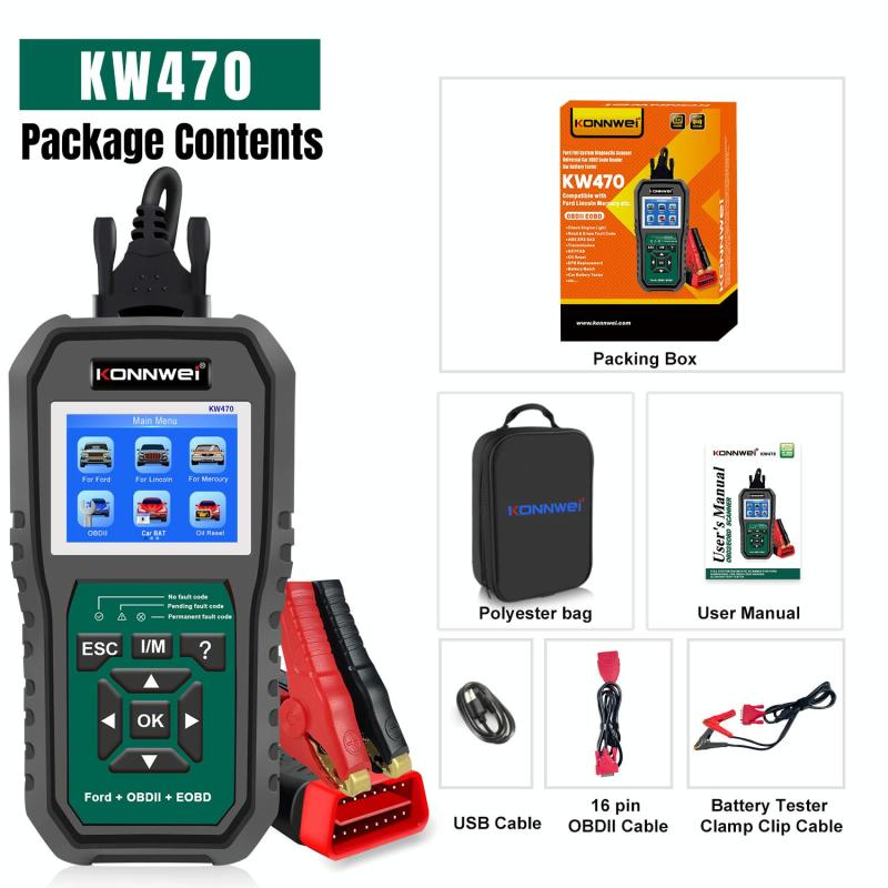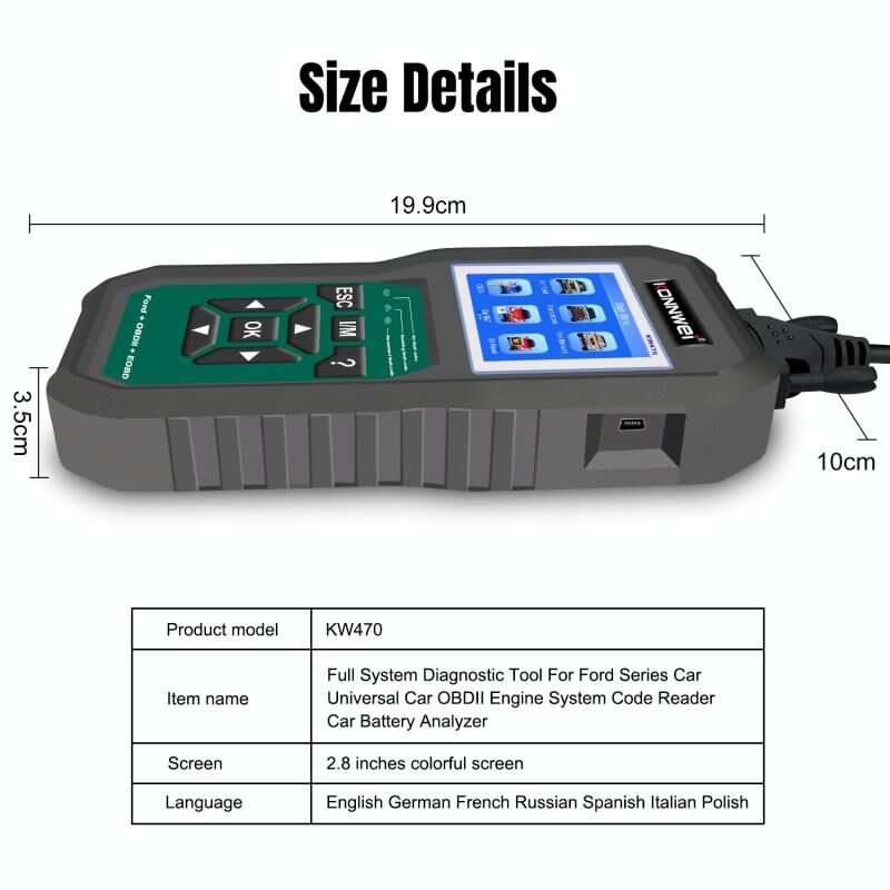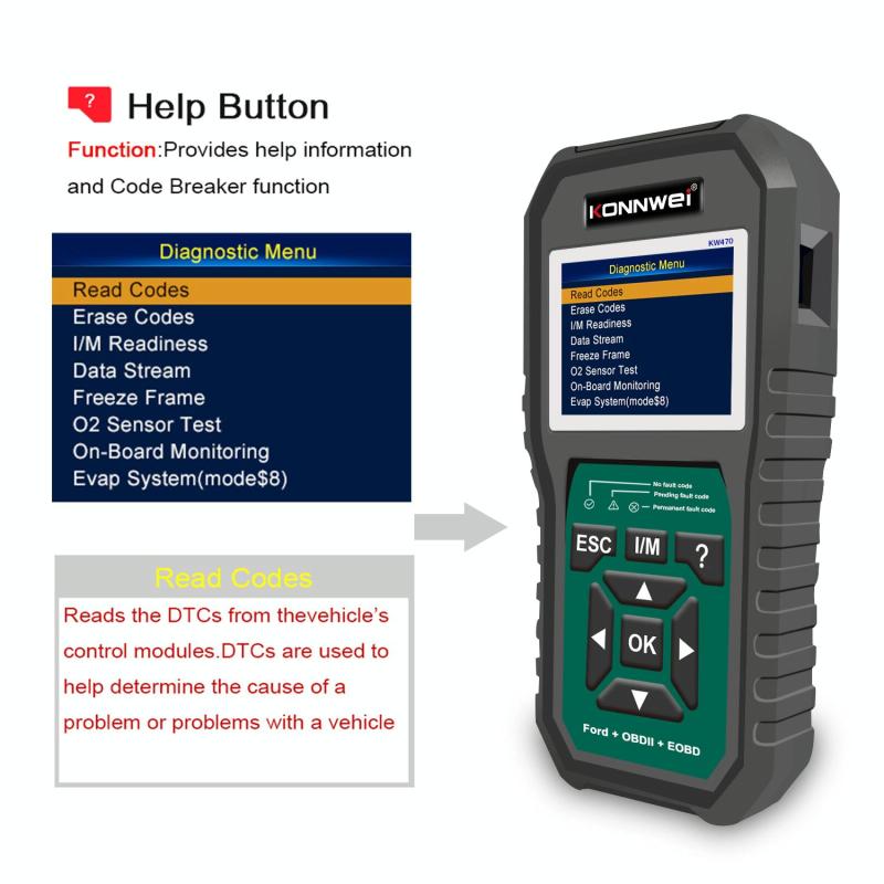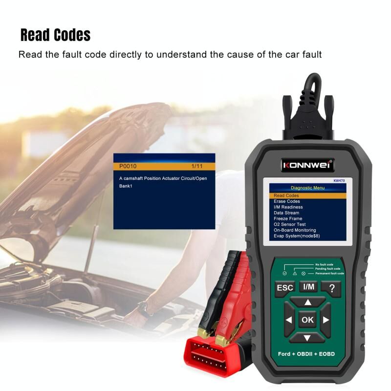 KONNWEI KW470 2.8 inch Color Screen Car OBD2 Fault Diagnostic Scan Tool for Ford(Black Green) (KONNWEI)