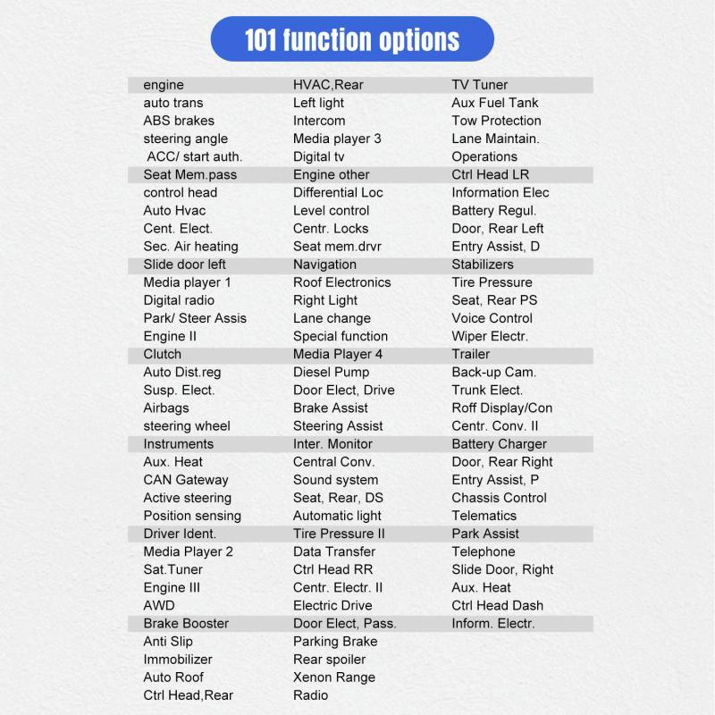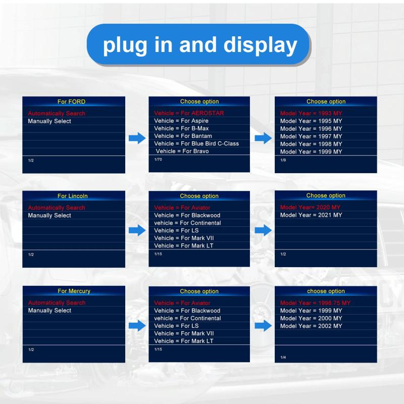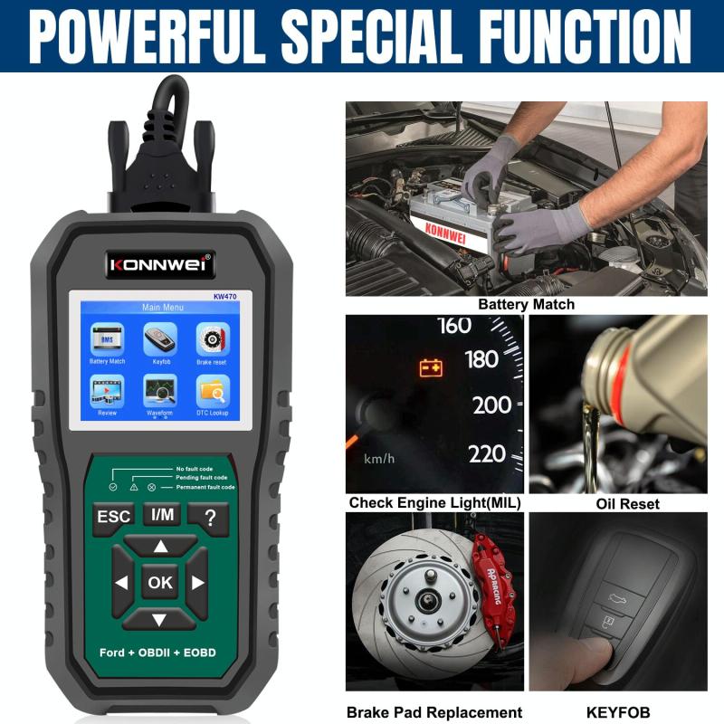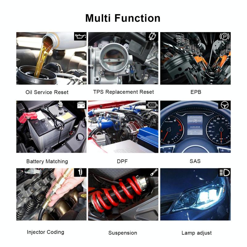 1. Full System OBD2 Diagnostic Tool: It is compatible with ford series car. It supports all system diagnostics, including engine light, ABS, transmission, SAS, ESP, TPMS and other systems. Equipped with multi special functions such as oil service reset/ Battery match/ KEYFOB/EPB Replacement.