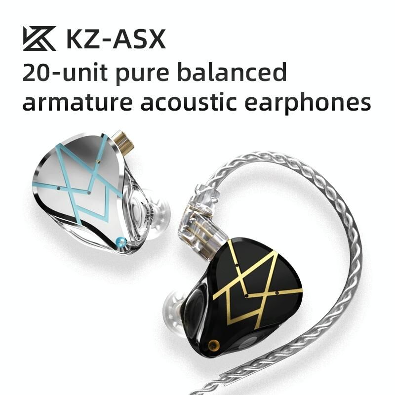 Ακουστικά ενδοωτικά με καλώδιο KZ ASX 20 μονάδων Balance Armature HiFi με μικρόφωνο (Ασημί) (KZ)