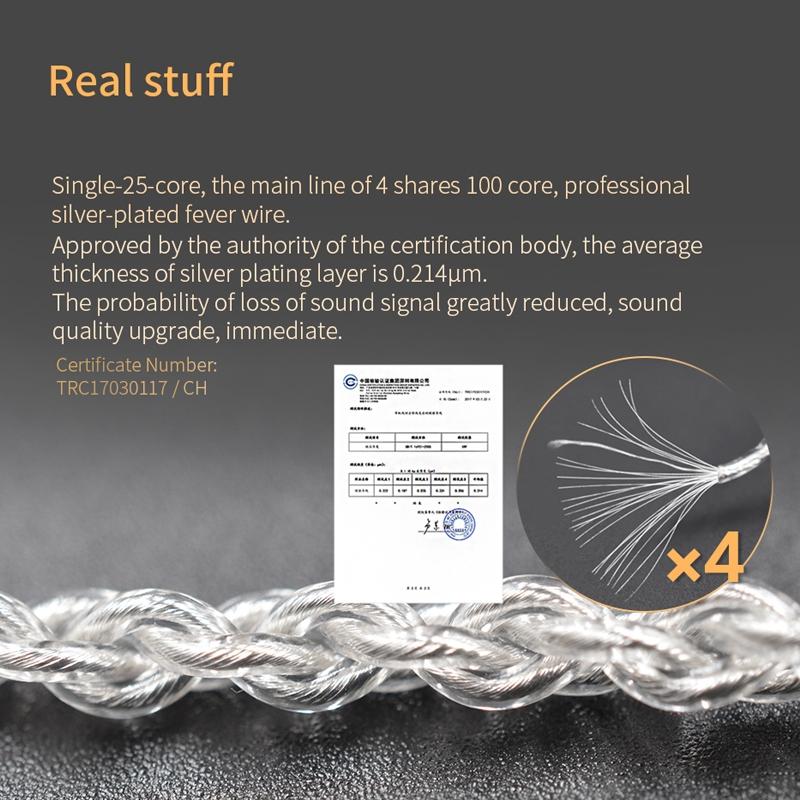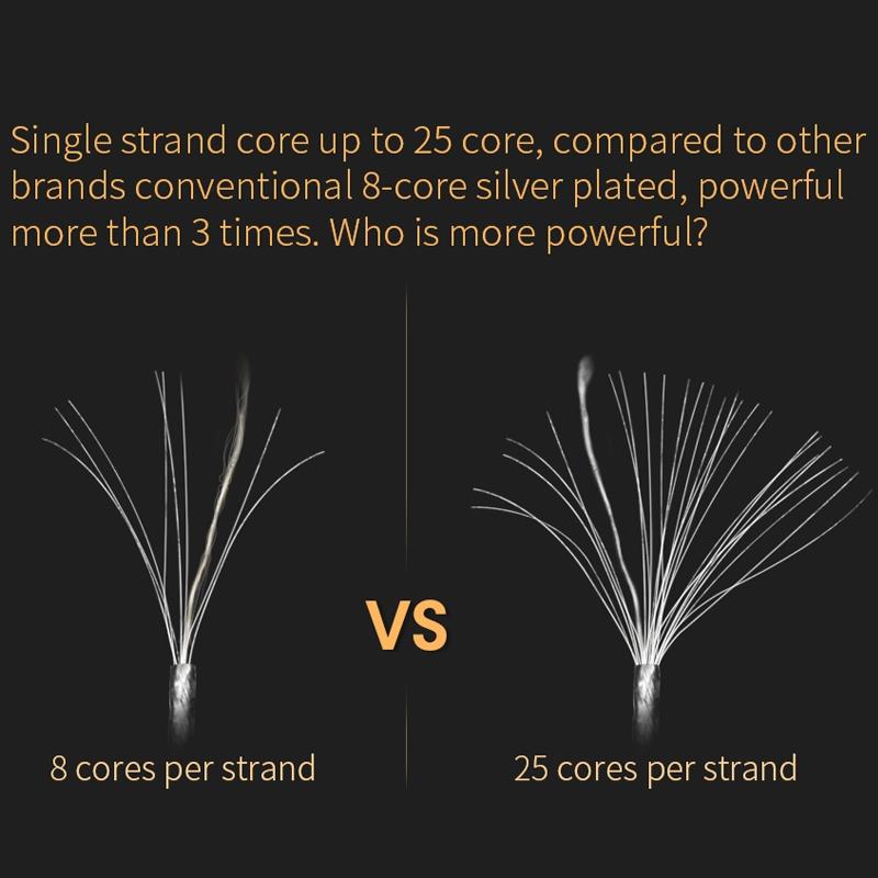 2. Single-strand 25-core, four-strand 100-core, the average silver-plated layer thickness is 0.214 micron, the probability of loss of sound signal is greatly reduced, and the sound quality is improved immediately.