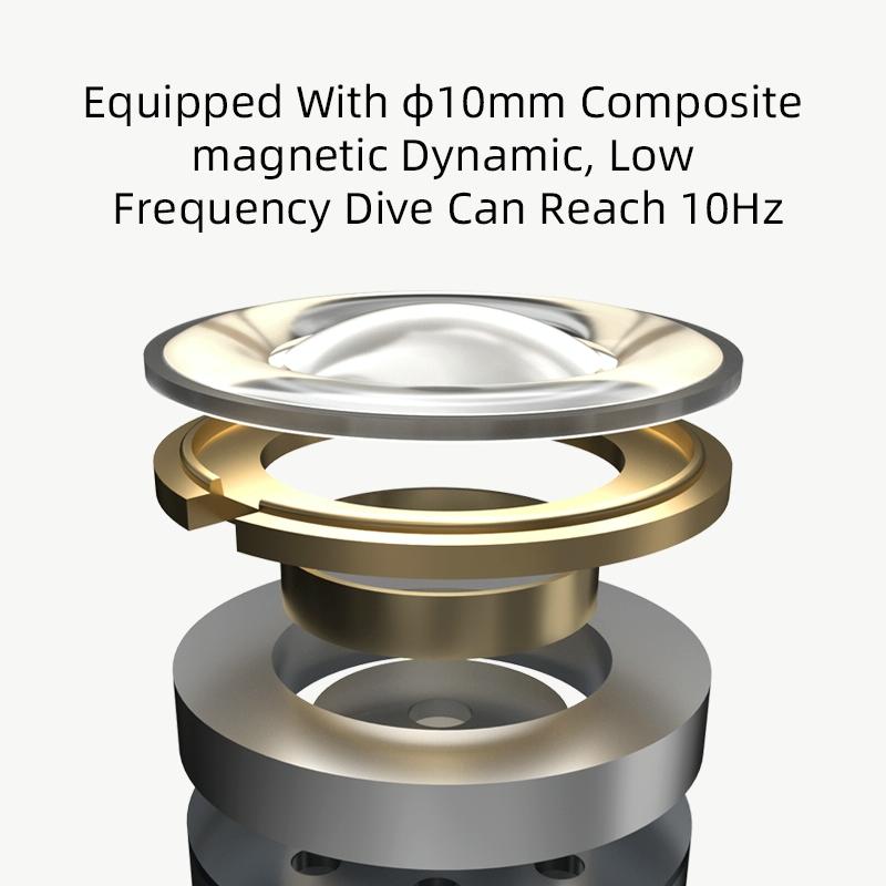 2. Μαγνητική δυναμική μονάδα 10mm, καλύπτει το ηχητικό φάσμα των χαμηλών συχνοτήτων, αποκαθιστώντας τις ηχητικές λεπτομέρειες