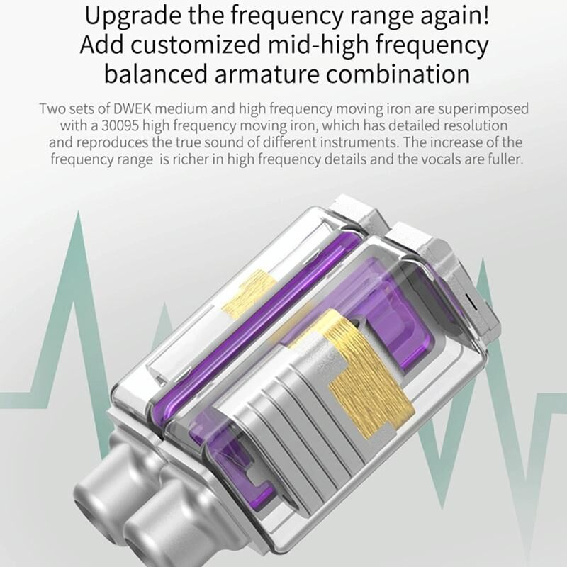 2. Δύο σετ μεσαίων και υψηλών συχνοτήτων κινούμενων σιδήρων DWEK συνδυάζονται με έναν κινητό σίδηρο υψηλής συχνότητας 30095, ο οποίος έχει ανάλυση εκπομπής χαρτιού και αναπαράγει τους πραγματικούς ήχους διαφορετικών οργάνων