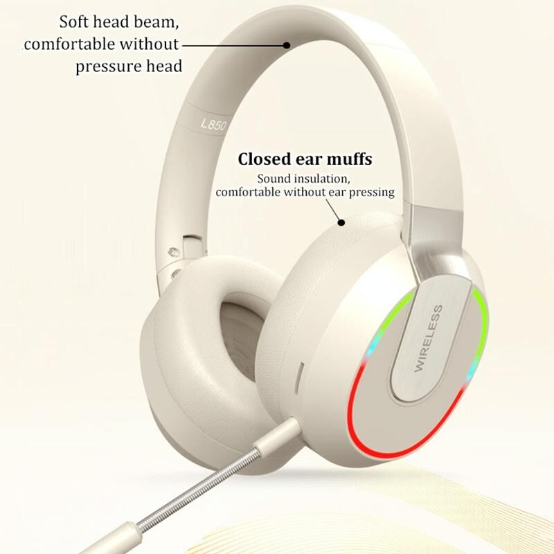 Ασύρματα ακουστικά Bluetooth με μικρόφωνο και τεχνολογία μείωσης θορύβου ENC, αναδιπλούμενα L850 (Λευκό)