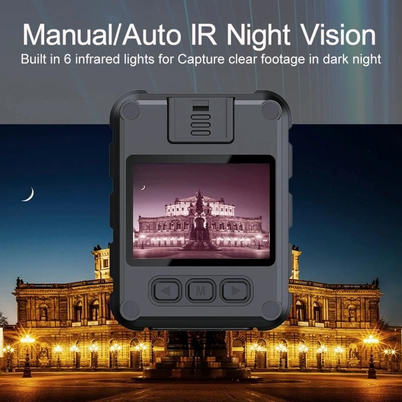 6. Αυτή η φορητή συσκευή καταγραφής για την επιβολή του νόμου είναι εξοπλισμένη με 6 ενεργειακά αποδοτικές υπέρυθρες λυχνίες και υποστηρίζει υπέρυθρη νυχτερινή όραση. Η λειτουργία υπέρυθρων μπορεί να ρυθμιστεί χειροκίνητα για να εξασφαλιστεί μια καθαρή εικόνα ακόμη και σε συνθήκες χαμηλού φωτισμού ή νύχτας.