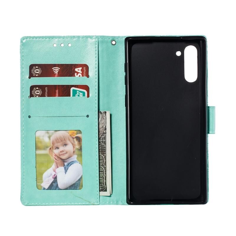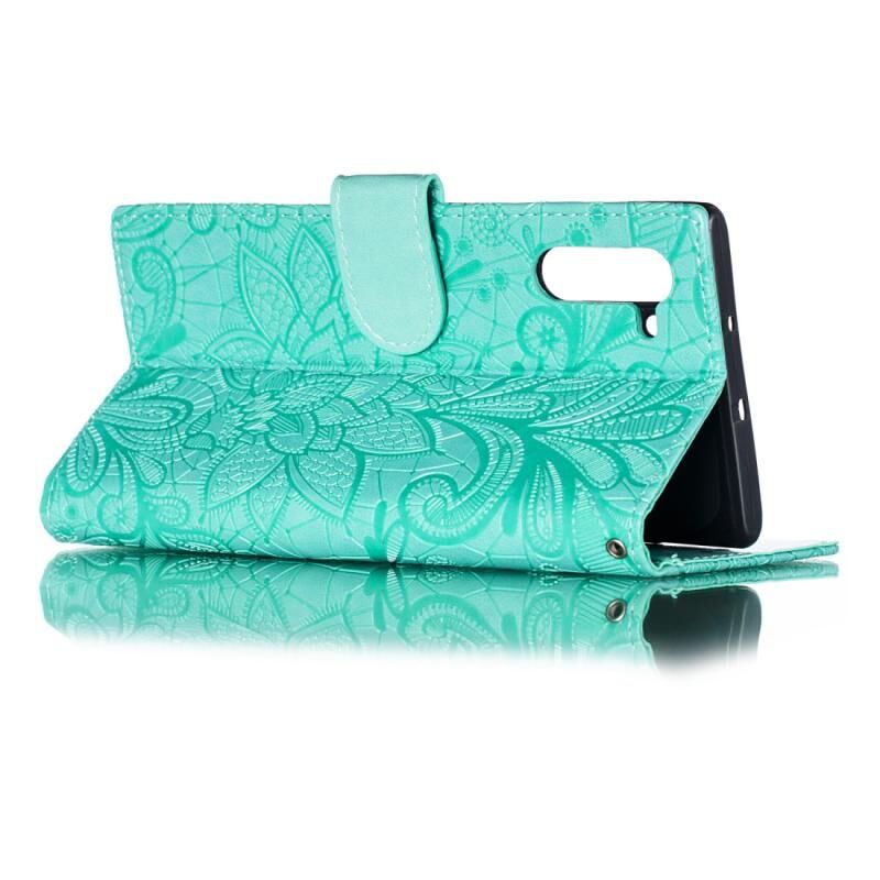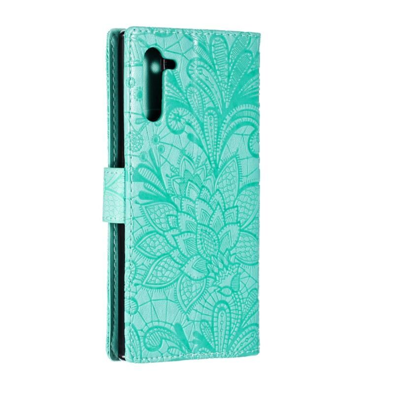 Θήκη δέρματος οριζόντιας αναδίπλωσης με σχέδιο λουλουδιών από δαντέλα για Galaxy Note10, με βάση & υποδοχές καρτών & πορτοφόλι & κορνίζα φωτογραφιών & κορδόνι (Πράσινο)