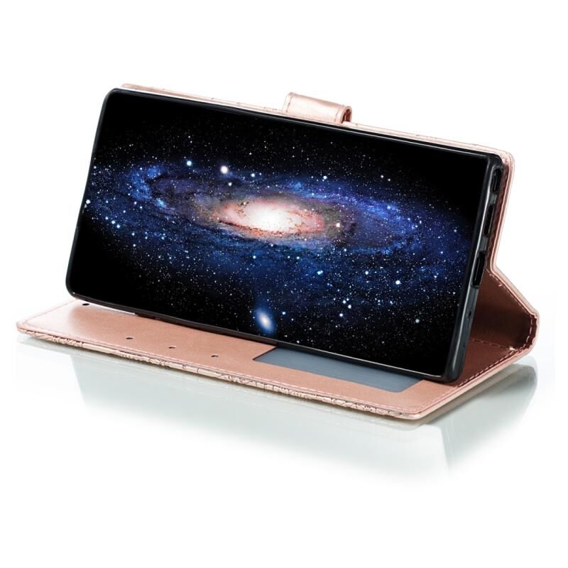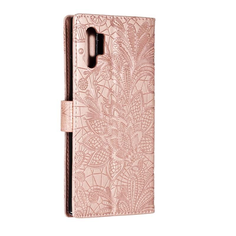 Θήκη δέρματος οριζόντιας αναδίπλωσης με σχέδιο δαντέλας λουλουδιών ανάγλυφης διακόσμησης για Galaxy Note10+, με βάση & υποδοχές καρτών & πορτοφόλι & κορνίζα φωτογραφιών & κορδόνι (Κόκκινο)