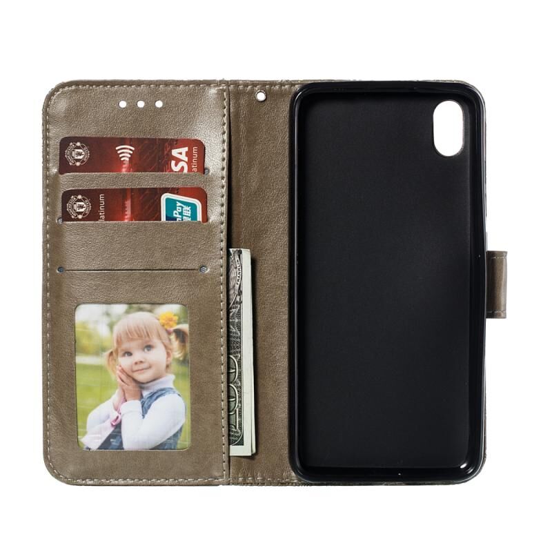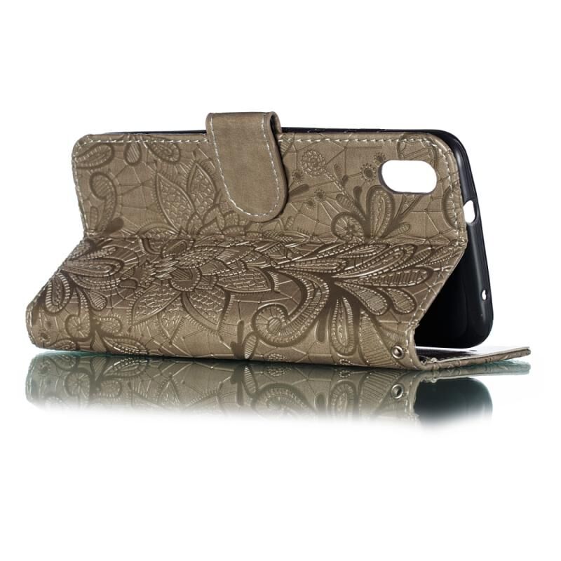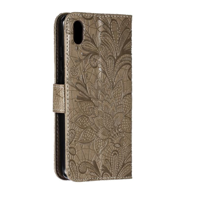 Θήκη δέρματος οριζόντιας ανατροπής με σχέδιο δαντέλας και ανάγλυφο λουλουδιού για Xiaomi Redmi 7A, με βάση στήριξης & υποδοχές καρτών & πορτοφόλι & κορνίζα φωτογραφιών & κορδόνι (Μωβ)