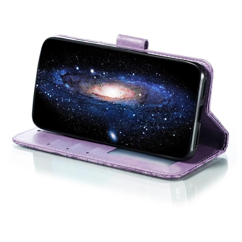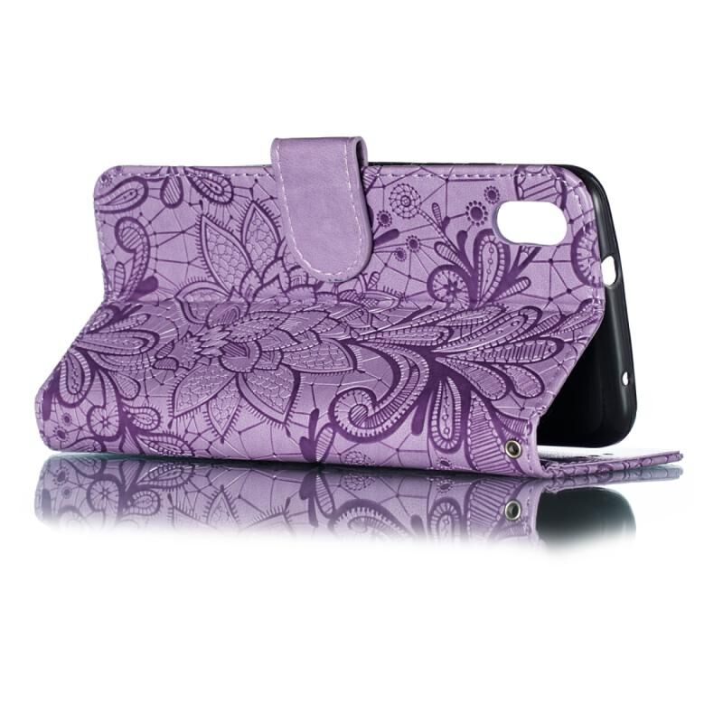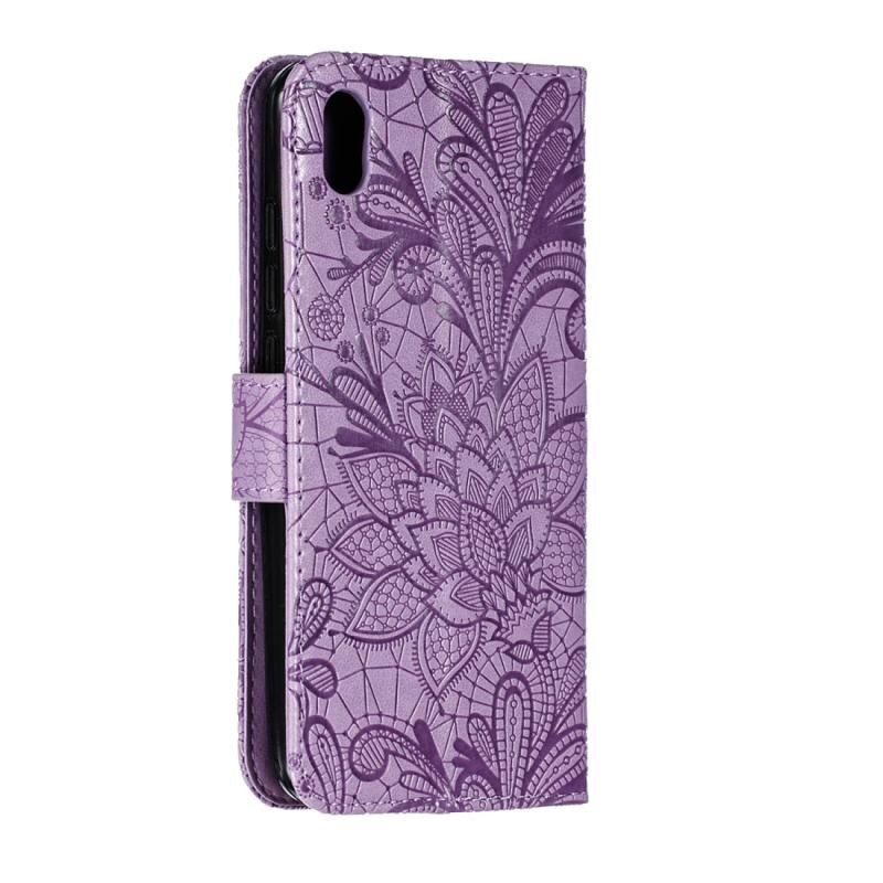 Θήκη δέρματος οριζόντιας ανατροπής με σχέδιο δαντέλας και ανάγλυφο λουλουδιού για Xiaomi Redmi 7A, με βάση στήριξης & υποδοχές καρτών & πορτοφόλι & κορνίζα φωτογραφιών & κορδόνι (Μωβ)