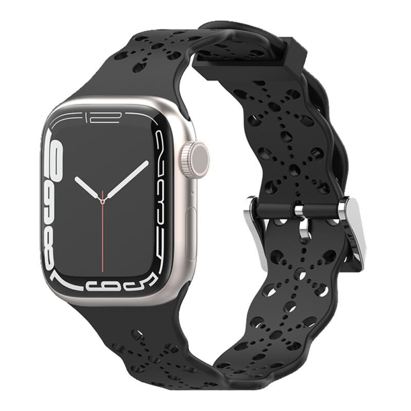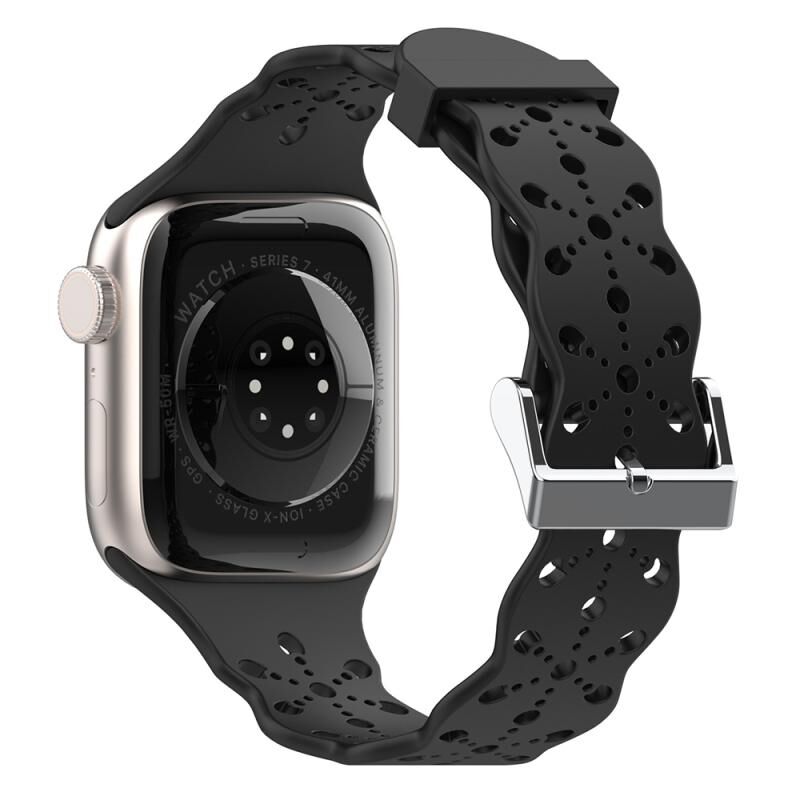 Λουρί ρολογιού σιλικόνης με δαντέλα για Apple Watch Series 9&8&7 41mm / SE 3&SE 2&6&SE&5&4 40mm / 3&2&1 38mm (Μαύρο)