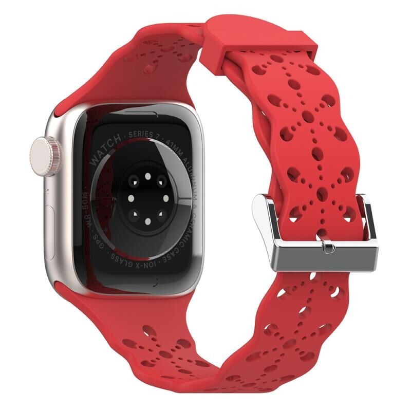 Lace Silicone Watch Band For Apple Watch Series 9&8&7 41mm / SE 3&SE 2&6&SE&5&4 40mm / 3&2&1 38mm(Rose Red)