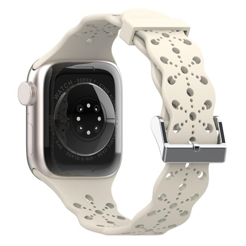Λουρί ρολογιού σιλικόνης με δαντέλα για Apple Watch Ultra 49mm & Watch Ultra 2 49mm / Series 9 & 8 & 7 45mm / SE 3 & SE 2 & 6 & SE & 5 & 4 44mm / 3 & 2 & 1 42mm (Μπεζ)