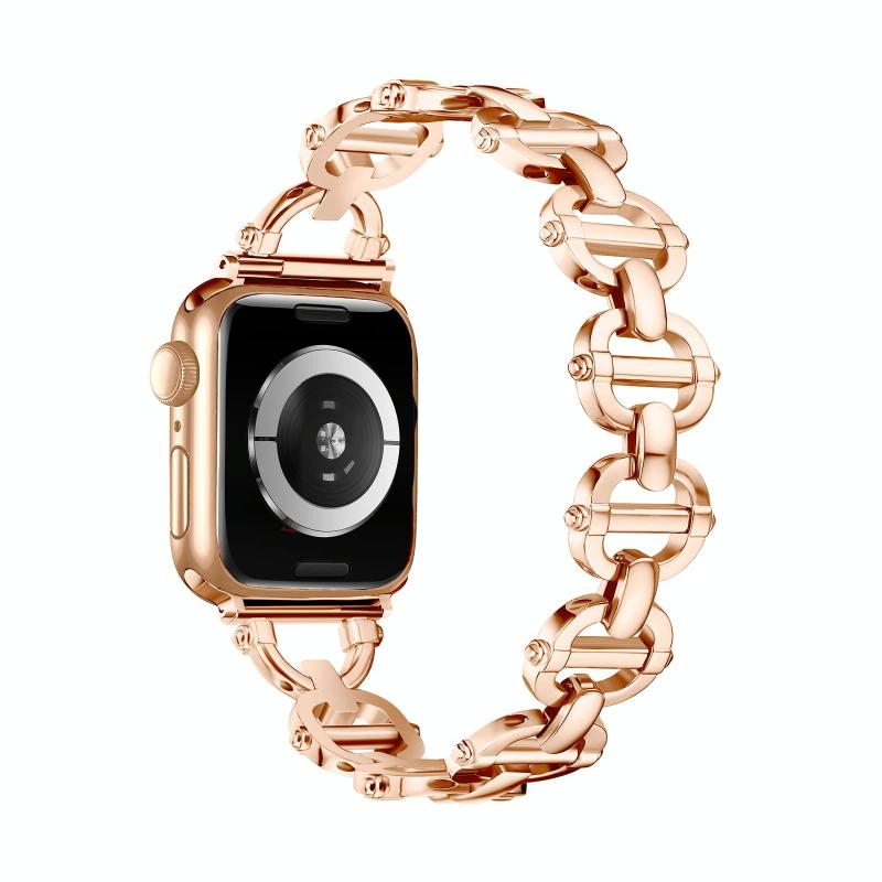 Λουρί για Apple Watch 7 41mm με αγκράφα σκάλας από μέταλλο (Ροζ χρυσός)
