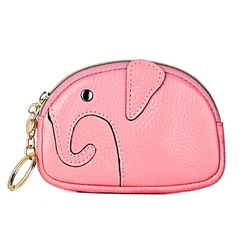 Ladies Head Layer Cowhide Elephant Zipper Coin Purse(Pink)