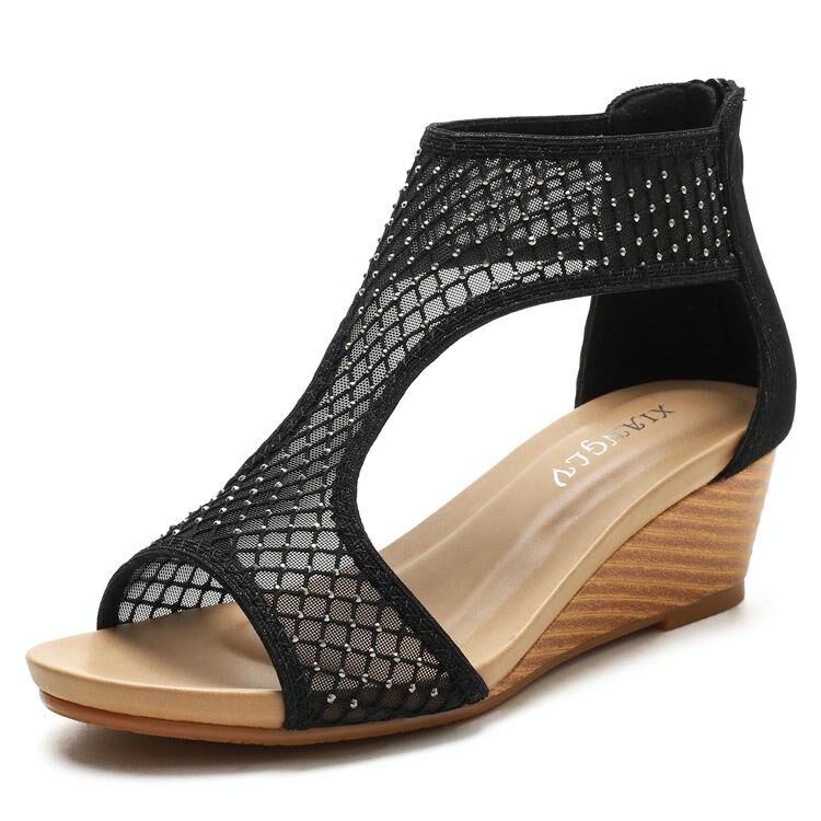 Κυρίες καλοκαιρινά σανδάλια All-Match Casual ματιών παχύ σόλα σφήνα τακούνι παπούτσια, μέγεθος: 39(μαύρο)