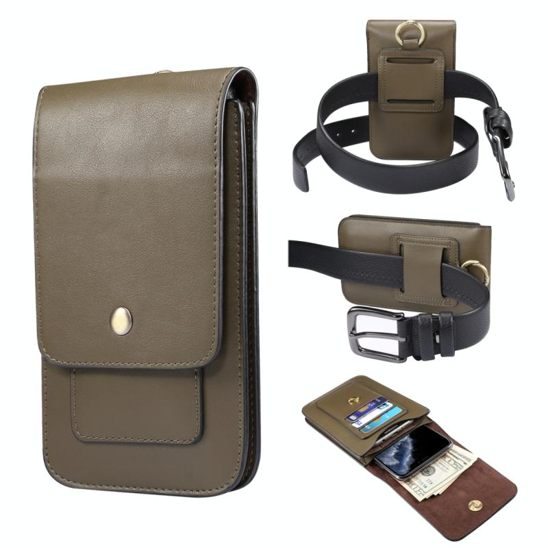 Lambskin Texture Men Phone Universal Double Lattice Waist Bag Leather Case, Size:L(Green)