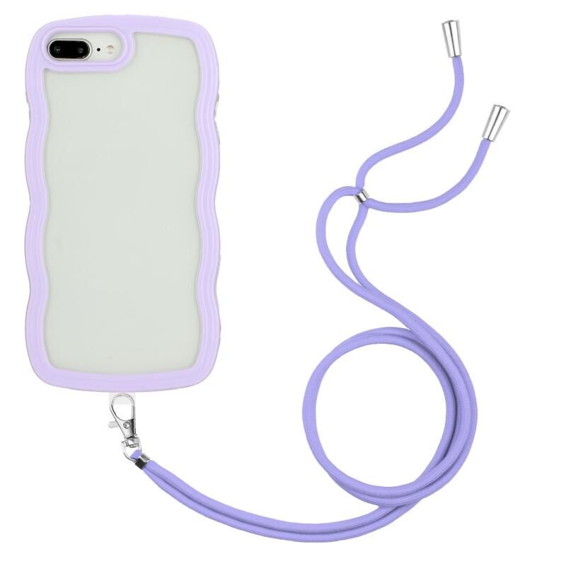 Θήκη τηλεφώνου για iPhone 8 Plus / 7 Plus σε λευκό χρώμα, από διαφανές TPU και PC με σχέδιο κυμάτων και κορδόνι σε καραμελένια απόχρωση.