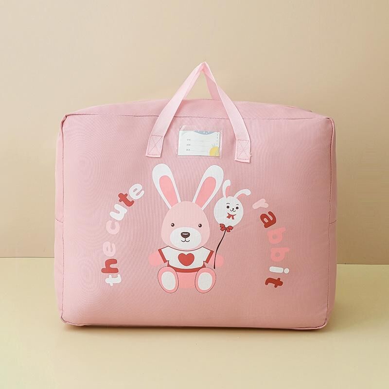 Large 46x60x26cm Children Quilt Storage Bag Student Clothes Quilt Portable Luggage Woven Bag(Pink Rabbit)
