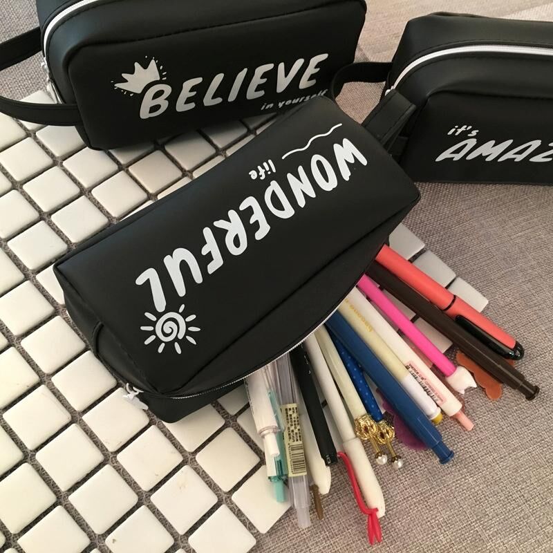 Μεγάλο μαύρο γράμμα Δημιουργική σιλικόνη στυλό κουτί μολυβοθήκη Σχολική γραφική ύλη προμήθειες (επιλογή)