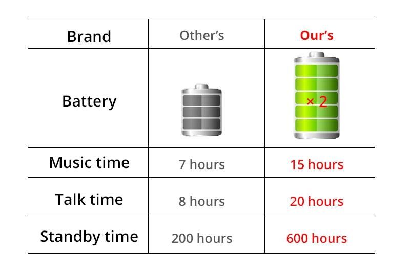 1.Μεγάλη διάρκεια ζωής μπαταρίας, μπαταρία μεγάλης χωρητικότητας 15 ώρες αναπαραγωγής μουσικής. Απολαύστε μουσική όλη μέρα, εύκολη επαναφόρτιση μέσω micro USB στη συνέχεια