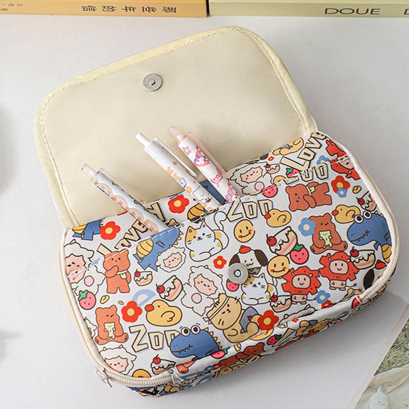 Large Capacity Waterproof Multi-layer Stationery Bag Transparent PVC Pencil Case(Bear and Partner)