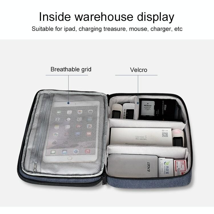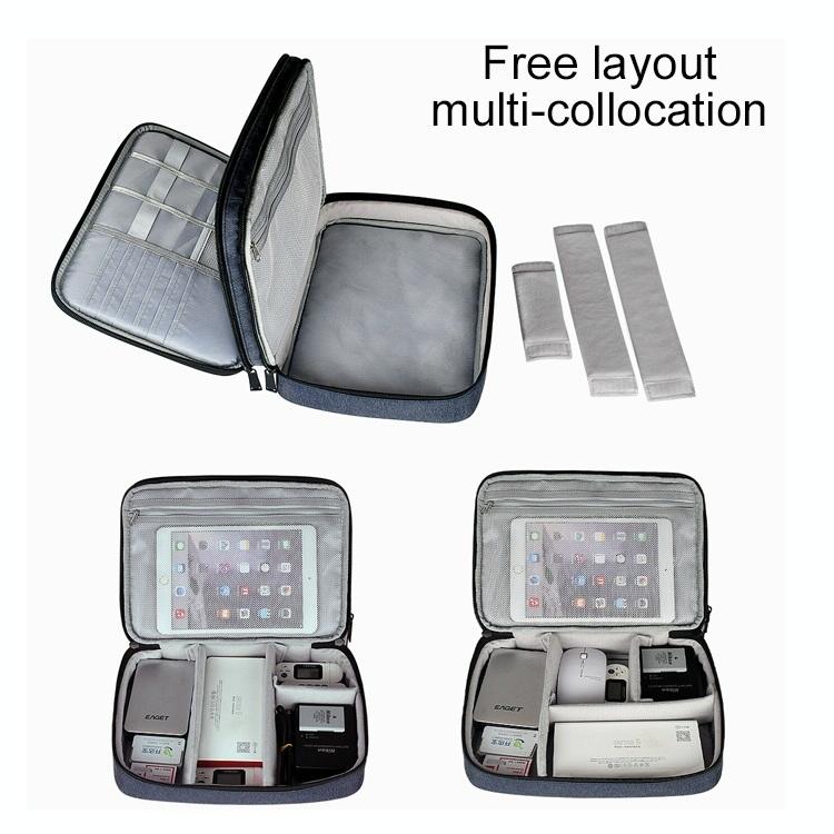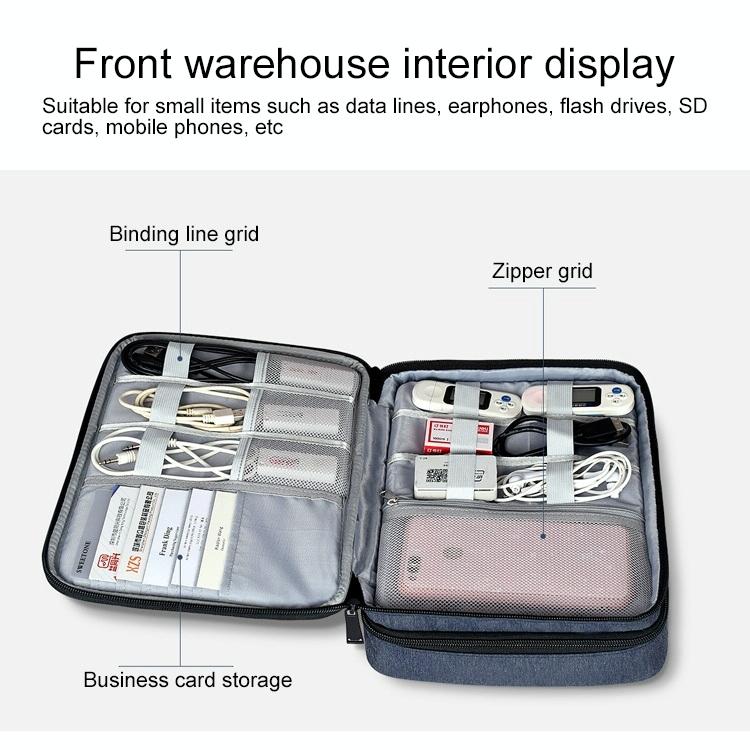 2. Μπροστινή αποθήκη: πλέγμα για καλώδια + αποθήκευση με φερμουάρ + θήκη για κάρτες, πίσω αποθήκη: αποθήκευση με φερμουάρ + γάντζος και θηλιά, μπορεί να τοποθετηθούν καλώδια δεδομένων, ακουστικά, iPad, power bank και άλλα μεγάλα και μικρά αντικείμενα.