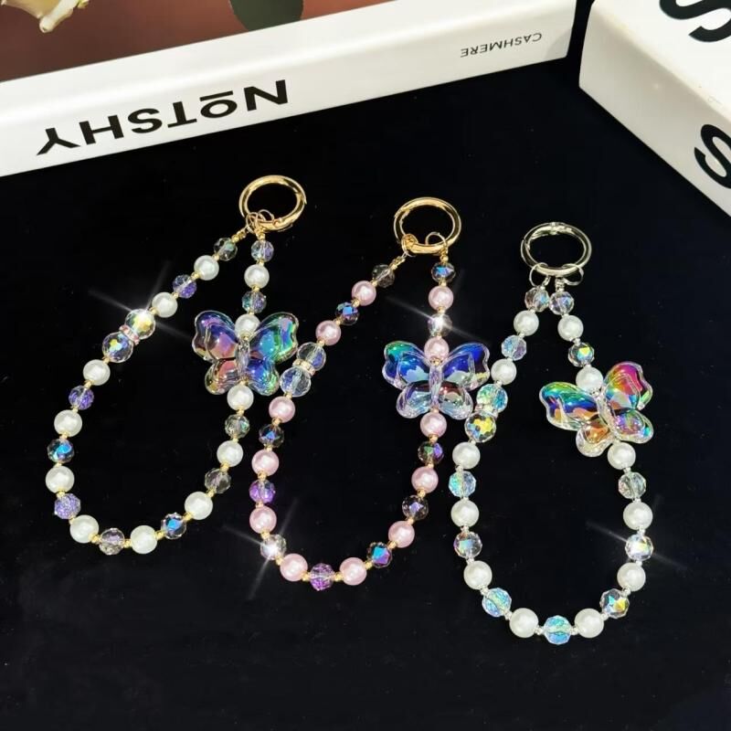 Laser Crystal Butterfly Pearl Mobile Phone Chain(Translucent Grey)