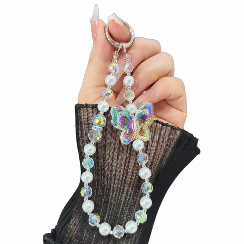 Laser Crystal Butterfly Pearl Mobile Phone Chain(Translucent White)