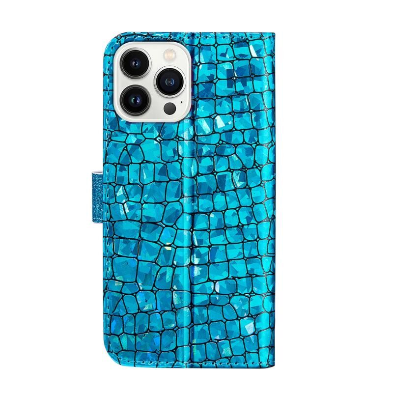 Laser Glitter Powder Matching Crocodile Texture Leather Phone Case For iPhone 14 Pro Max(Blue)