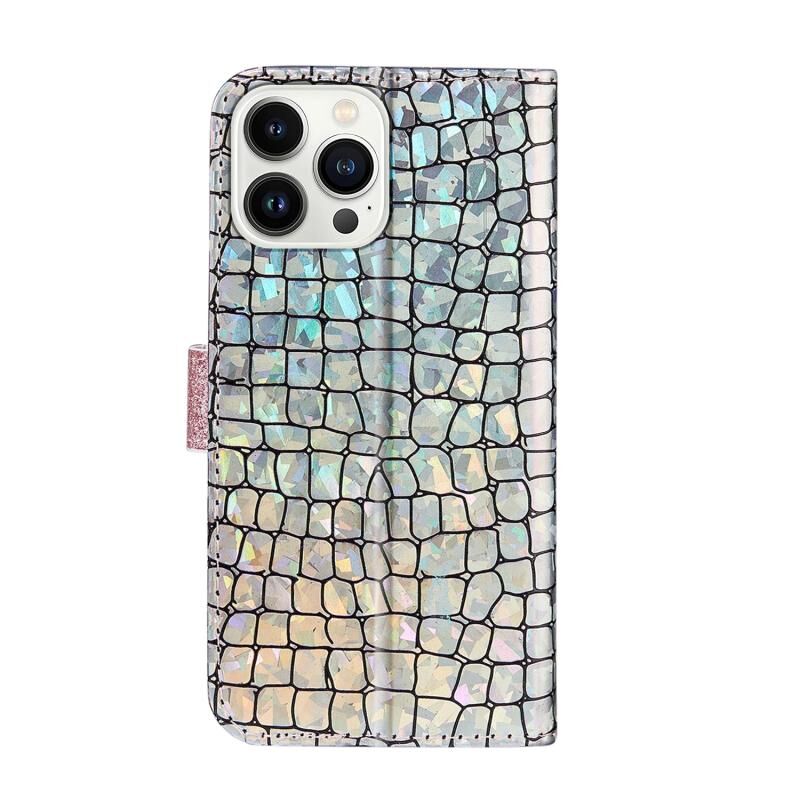 Laser Glitter Powder Matching Crocodile Texture Leather Phone Case For iPhone 14 Pro(Silver)