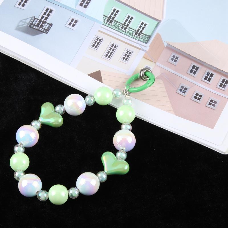Laser Pearl Heart Bead Chain Anti-lost Short Lanyard(Green)